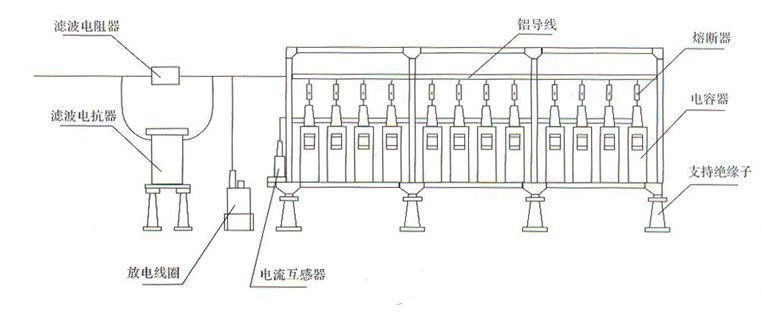 本裝置由濾波電容器組、空芯電抗器、開關(隔離開關、接地開關、斷路器等)、避雷器、熔斷器、電流互感器、放電線圈、電阻器及絕緣子、框架等組成。(裝置中根據用戶要求電器元件有所增減,均符合相應的標準)