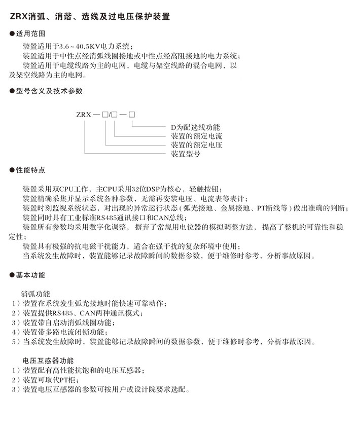 ZRX消弧、消諧、選線及過(guò)電壓保護(hù)裝置